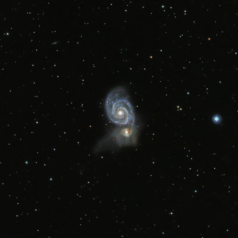 Remark: Rework of data from 2016 (M51 V2) with Pixinsight only. Now I see that I produced some artefacts at the bright stars during the deconvolution. See here a comparison of M 51 photos.