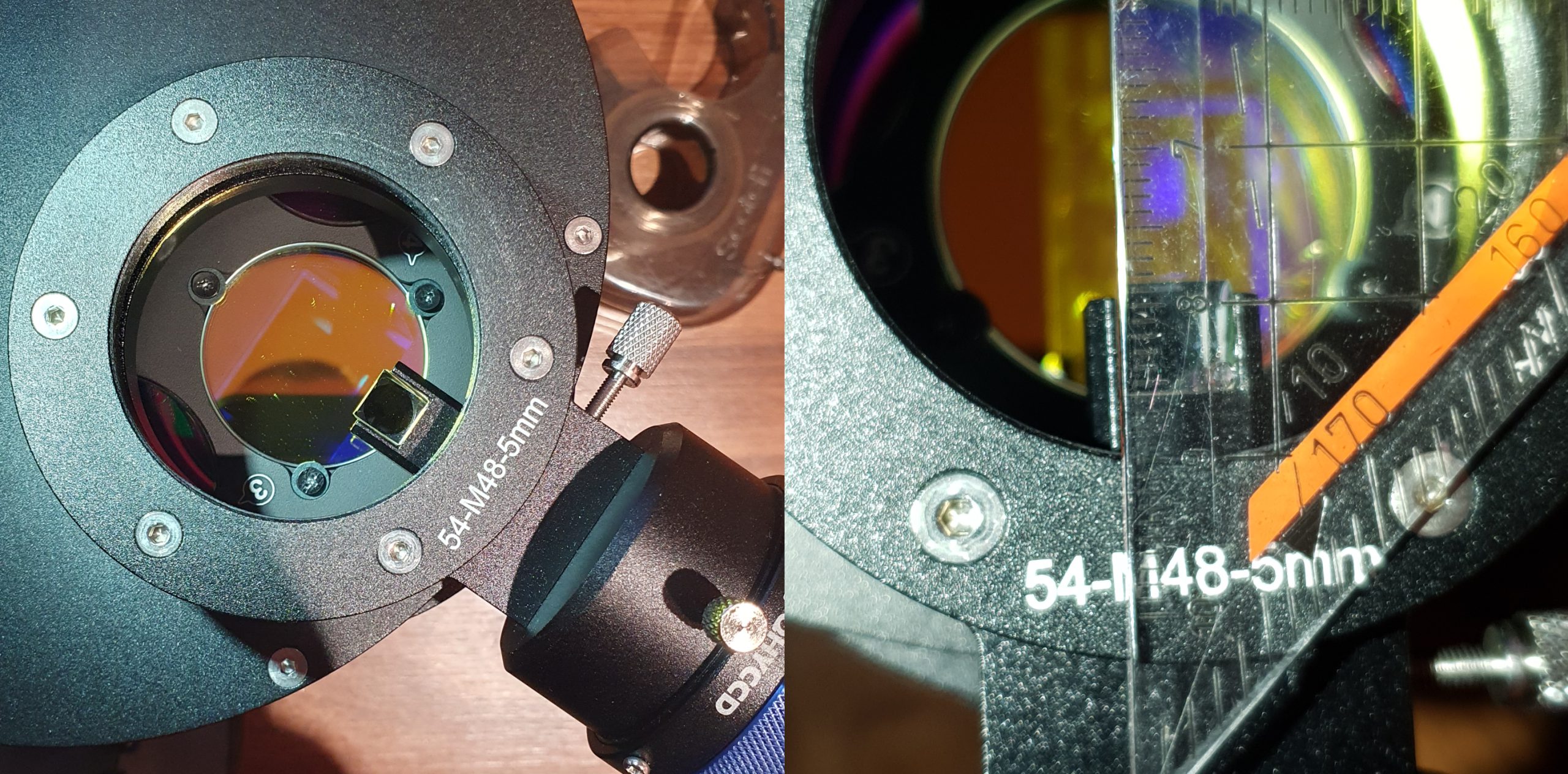 Eine Messung der Dicke der Positionen 7,8 und 9 ergab eine gesamte Länge von nur 12,8 mm gegenüber den 13,0 mm lt. obiger Tabelle. Dazu kommt, dass die Abstände bei dem Test mit der Atik 383 am 13.05.23 und bei den früheren Einsätzen der Atik 490 bei ca. 67 mm lagen.