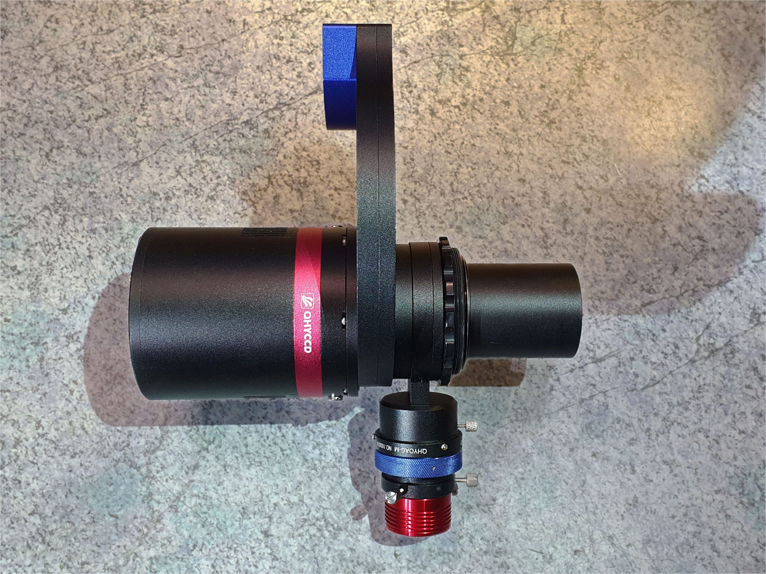 Der Kameraadapter wurde nachgearbeitet. Er hat jetzt keinen nennenswerten Rundlauffehler mehr. Die effektive Dicke beträgt jetzt nur noch 12,2 mm. Damit ergibt sich ein neuer Aufbau: