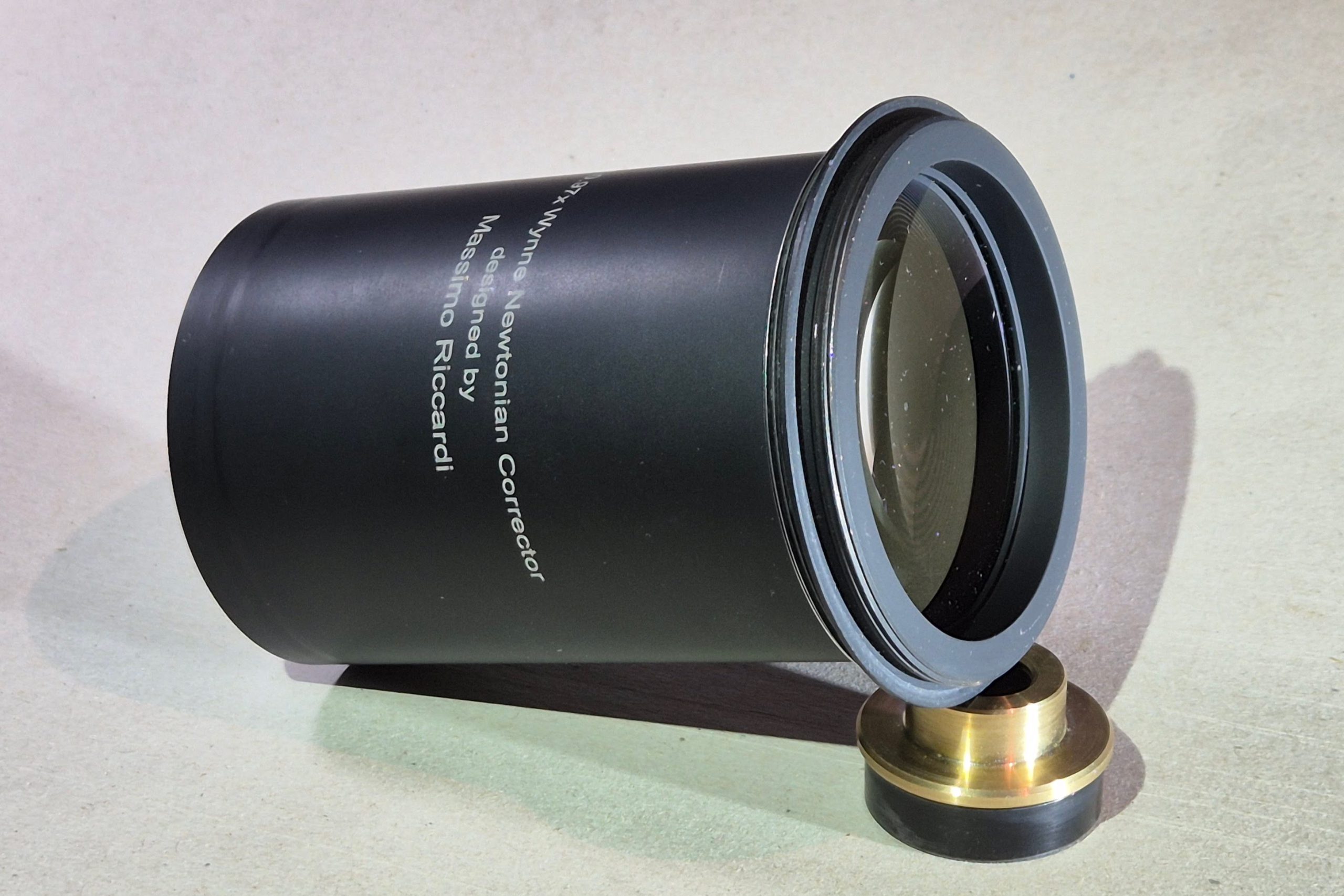 Das Design meines des Newtons sollte eine gute Ausleuchtung des 24 mm x 36mm Vollformats in Verbindung mit einem 2.5″ Wynne Korrektor ermöglichen. Bevor jedoch Erprobungen mit diesem Korrektor starten können, muss erst mal eine Kameraadation für die einzige bei mir verfügbare Vollformatkamera (EOS 5Da MKII) her. Da die Abstände recht knapp sind, entschied ich mich für einen Adaper, der gleich einen Off Axis Guider (OAG) mit integriert. Passende Lösungen am Markt schien es nicht zu geben. Daher habe ich einen passende OAG selbst gebaut.