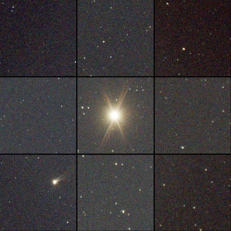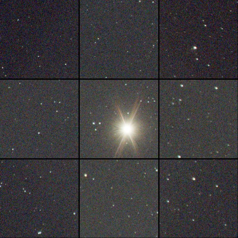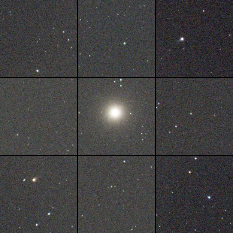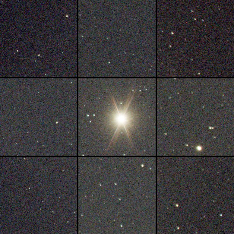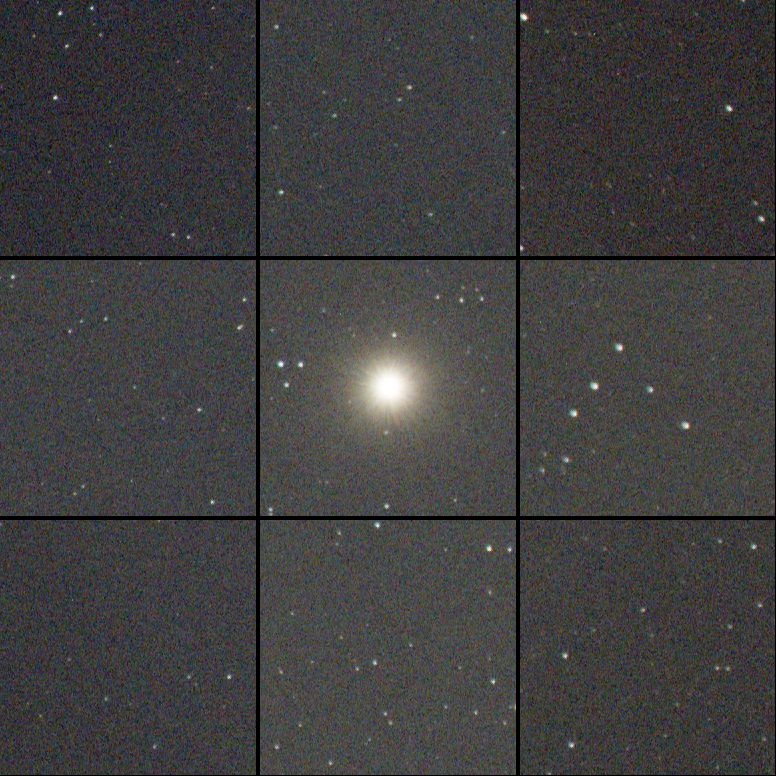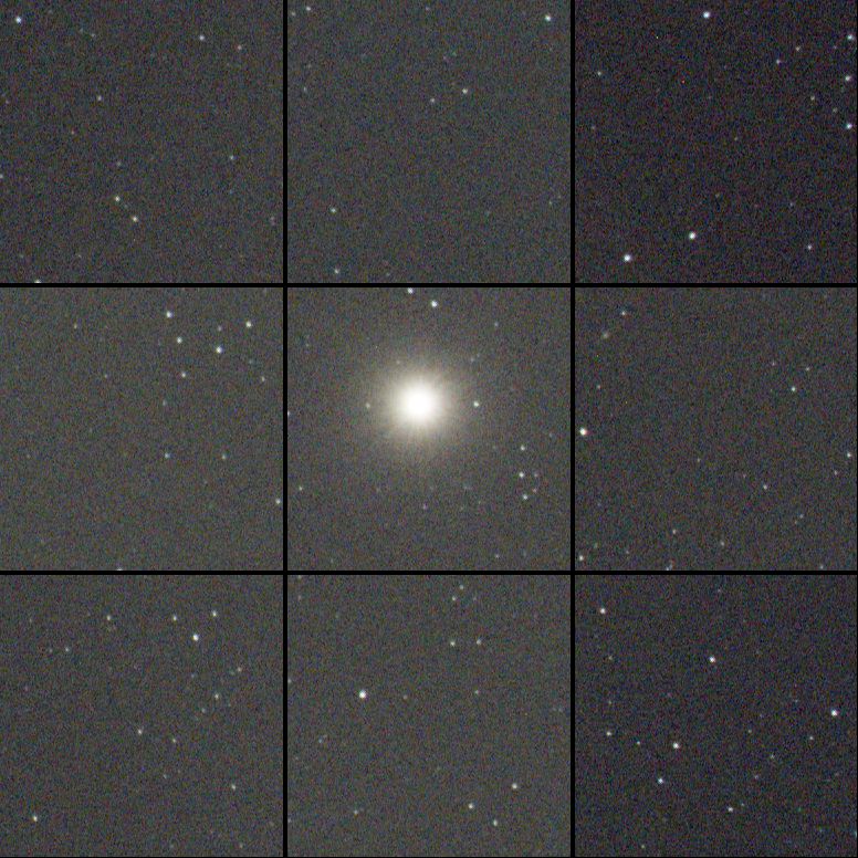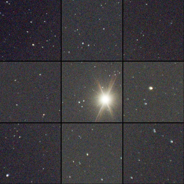 These test photos have been conducted during two nights. In order to get a good comparability, the distance of 57.0 mm was shot at both nights. Surprisingly the „spikes“ at the bright star occur only during the first night. Looking at the corners of these pictures it seems that the sensor distance of 58.0 mm gives the best results. Hence this distance is my base for my further work. The field illumination is almost perfect. If you evaluate the illumination, you get 94% illumination in the outermost corners, which is almost nothing and can be easily compensated by flat field calibration. It is an interesting question, whether the illumination get better, if the M54 adaptor ist used.