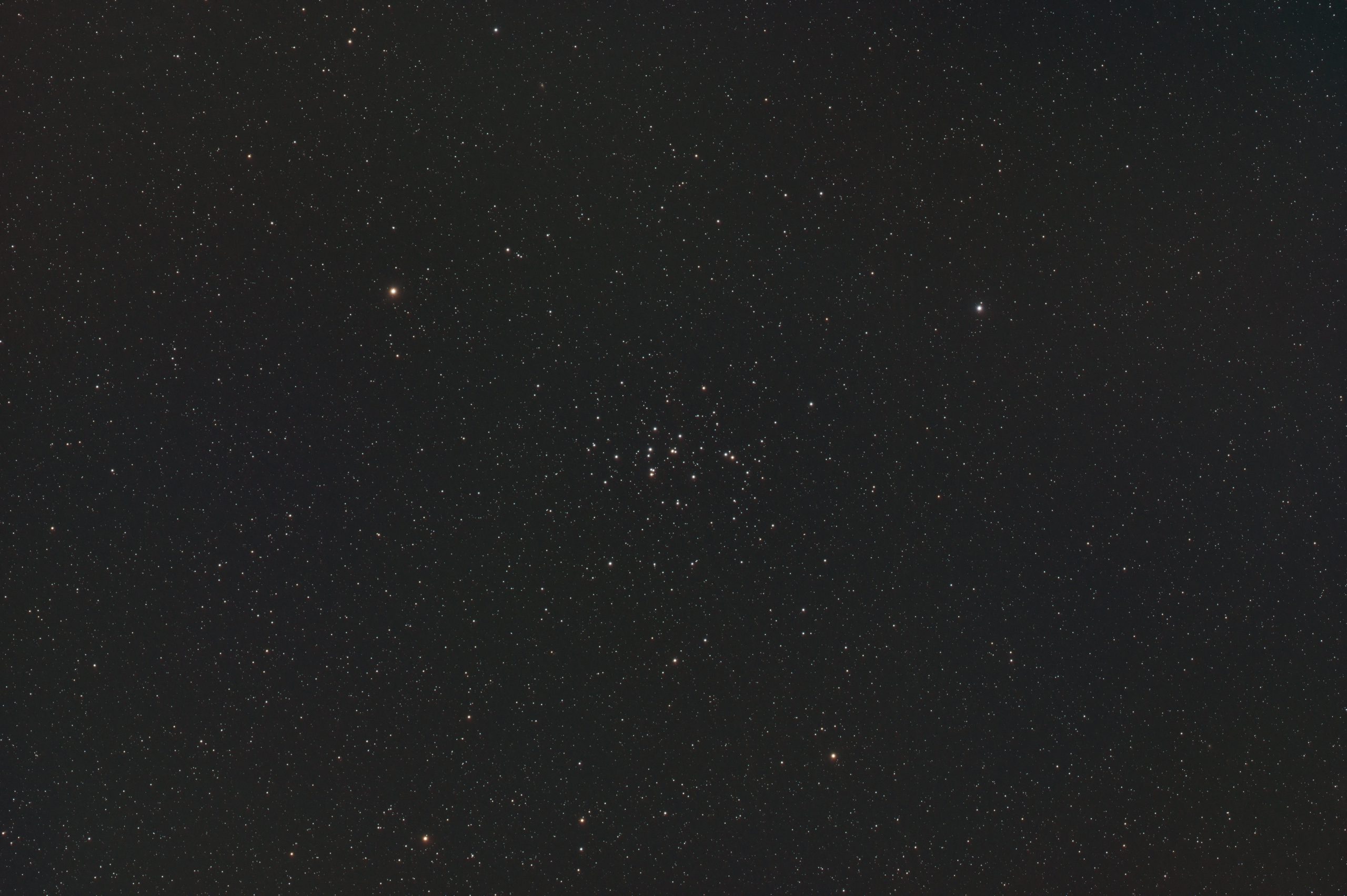 The photo of M 44 was taken with the same setup as the 58.0 mm configuration. The clear glass filter was in the train, as well. Here is a single frame with 120 s exposure time presented. The processing has been reduced to an absolute minimum: calibration, color calibration, noise reduction, stretch.